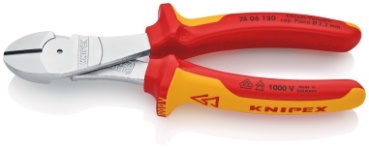 knipex High Leverage Diagonal Cutter insulated with multi-component grips, VDE-tested chrome plated 180 mm cutting edges with bevel
