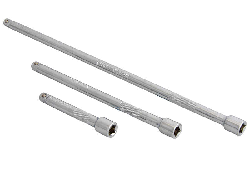 Set of 3 Blue Spot 1/4in drive extension bars made from chrome vanadium steel which is heat treated for strength and durability.