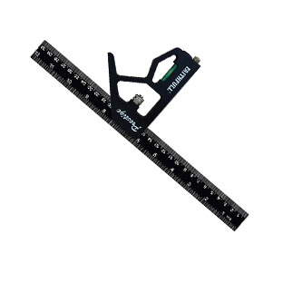 The Faithfull Prestige Combination Square is manufactured from aluminium using computer numerical controlled (CNC) machines. The black anodised finish offers enhanced corrosion protection and the laser engraved scales give outstanding measurement accuracy. This versatile tool for use in both woodworking and metalwork projects, may be used as an internal and external try square, T-square slide, mitre square, vertical and horizontal level, depth and marking gauge. It is suitable for marking out 45°, 90° and 135° angles. The square incorporates a handy spirit level for accurate 90° horizontal and vertical readings and a marking scribe located in the block.