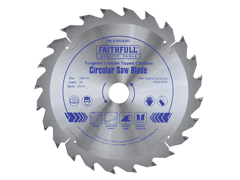 Faithful TCT Cordless Trimsaw Blade 165 x 20mm x 24T POS