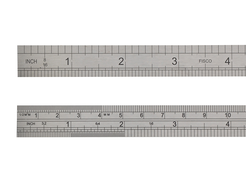 This double sided rule is 15 mm wide and 0.5 mm thick.