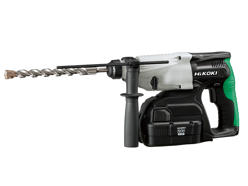 The HiKOKI DH24DVC SDS Plus Hammer Drill with 3-mode action in roto-stop. Ideal for hammer drilling, rotary drilling or chiselling. Variable speed and reverse, safety clutch. For use with SDS chisels, points and drill bits. Multi-angle chisel setting. Replaceable carbon brushes.