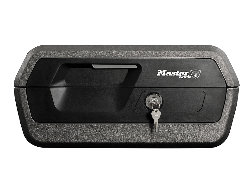The Master Lock LCFW30100 Large Key Locking Chest is waterproof and fire-resistant. It has a sleek design with a flush-mounted faceplate and rugged look.
