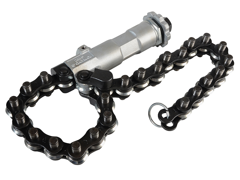 The Ridgid 238-P Powered Soil Pipe Cutter cuts cast iron soil pipe quickly and easily in tight spaces. It is designed to cut up to 200mm (8in) soil pipe when driven by an impact driver (minimum 340Nm torque) or 100mm (4in) with the included ratchet.