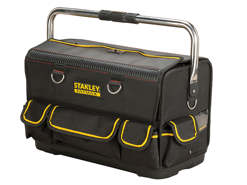 The Stanley FatMax® Double Sided Plumbers Bag conveniently opens up to a full workstation. Its double side opening enables separation of materials and tools. It offers ideal fit and protection for tools like pipe cutters, pipe benders, basin wrenches, making it perfect for plumbers.