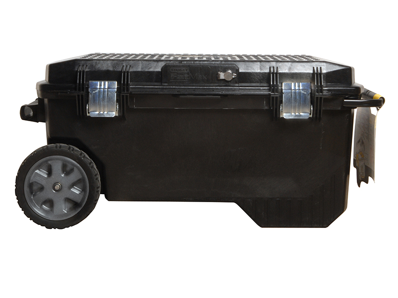 The Stanley FatMax® Mobile Chest has a lock mechanism in the lid to hold a level and a saw. Tools can also be stored vertically within the chest. An all-round water seal keeps valuable contents safe. Heavy-duty wheels give mobility on rough surfaces.