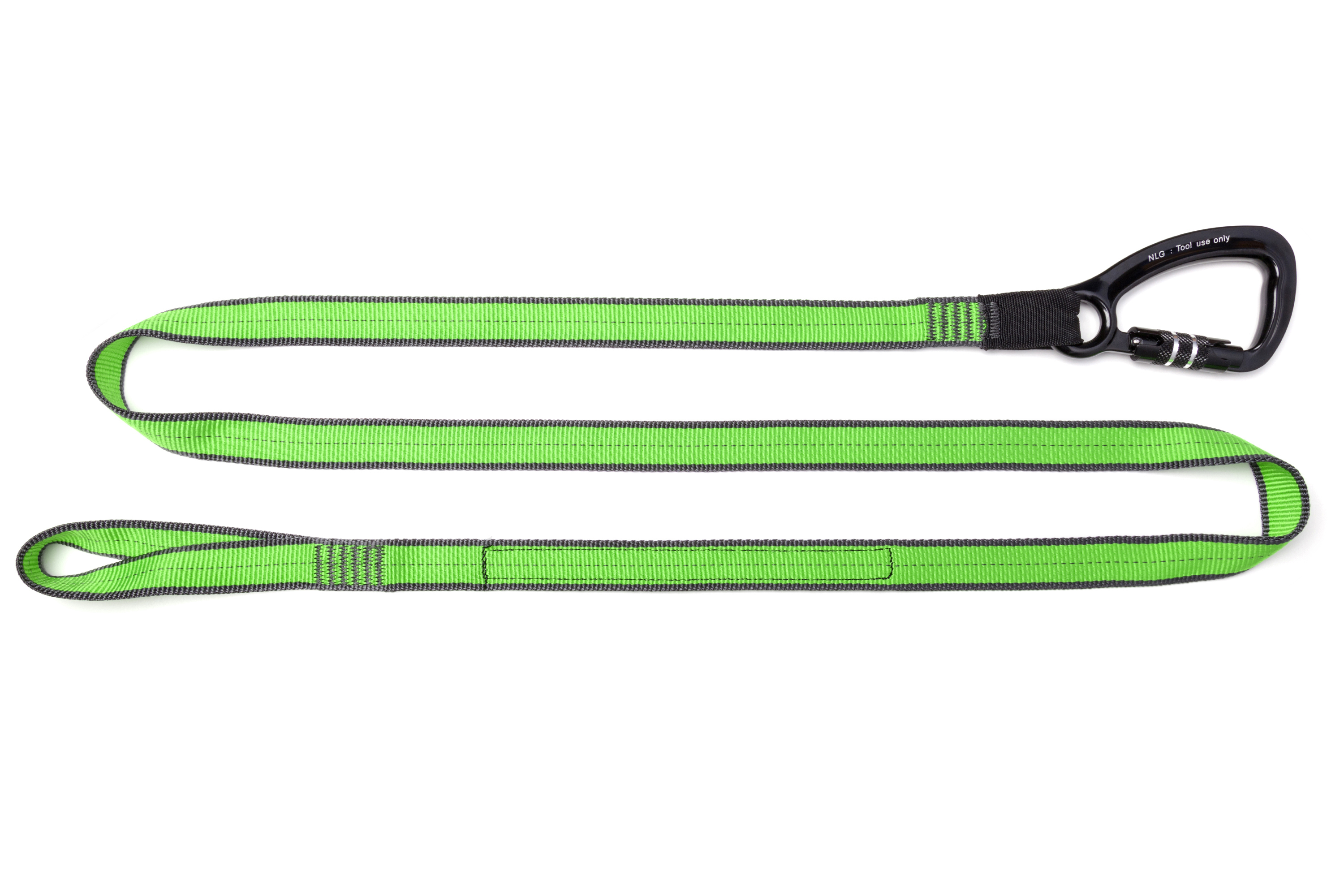 The twistlock double action carabiner ensures that there can be no accidental release whilst in use. The loop end of this lanyard can be used to loop around the captive handle of a power tool, through a manufactured captive eye, or around a fixed object or beam.