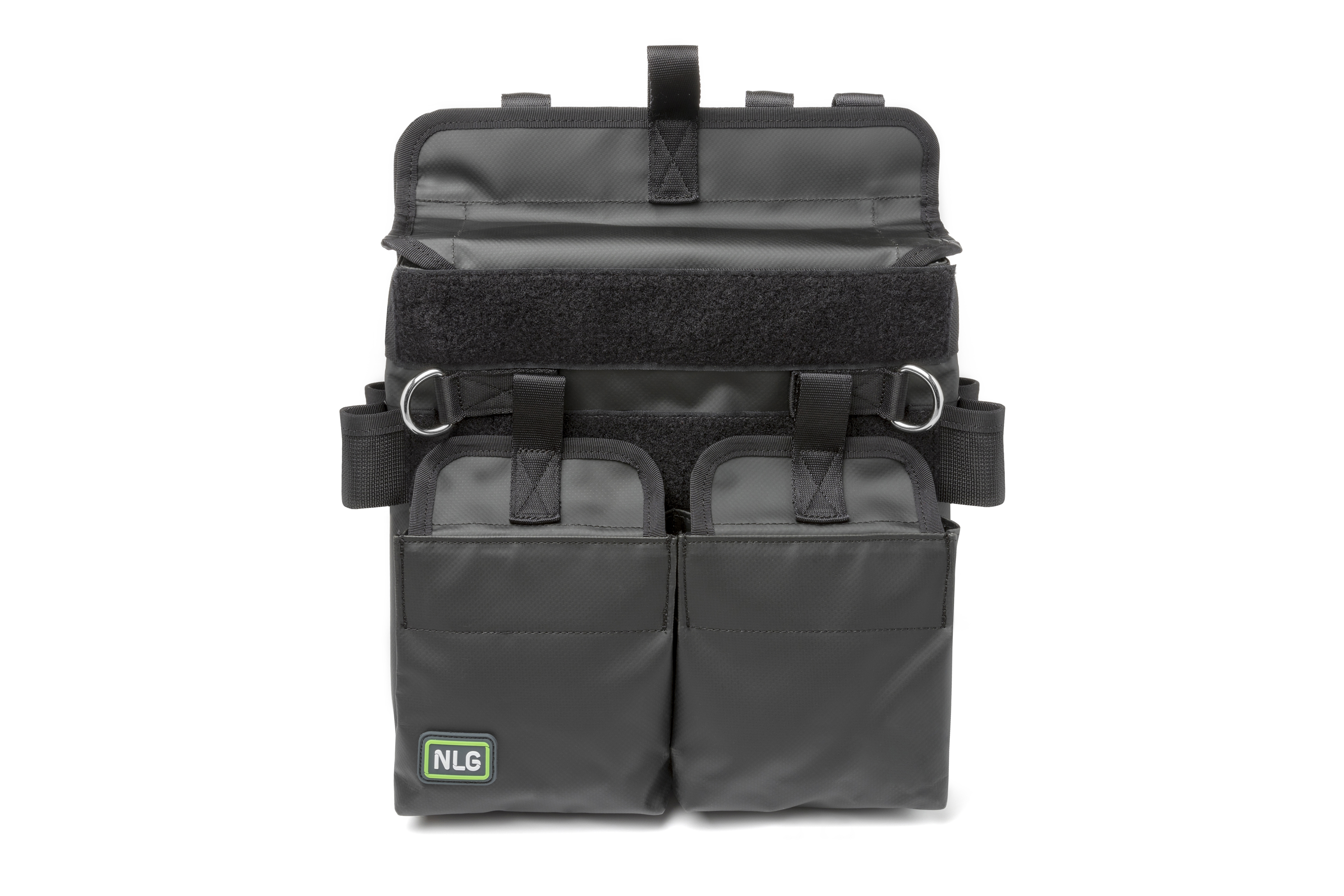 The NLG Linesman Bag is a specialist bag that is designed for industrial climbers who need to keep their tools close, easily accessible and securely tethered. It is the bag of choice for those working in the harshest environments with a unique closure system on all openings to secure bag contents and protect against external elements.