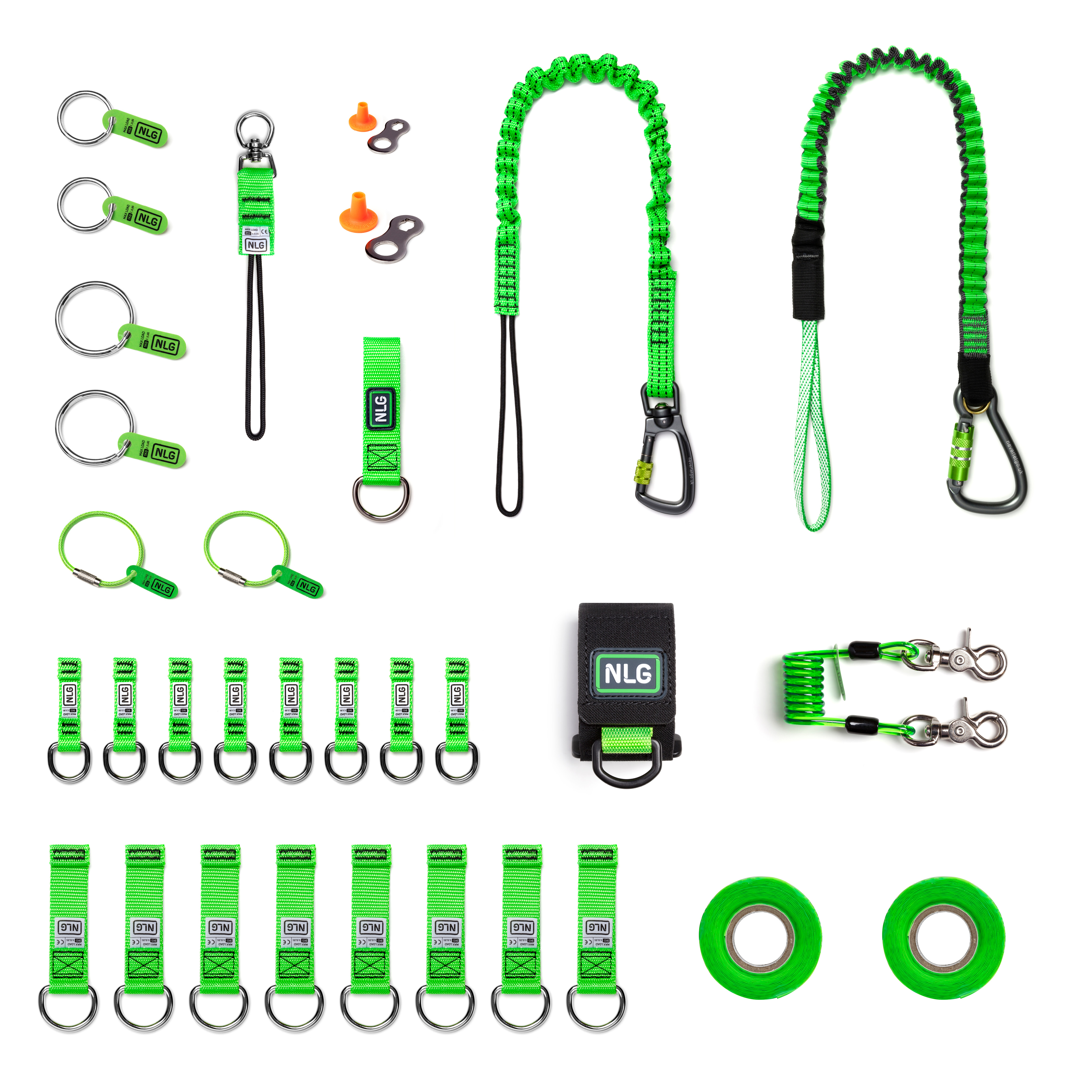The NLG 25 Tool Tethering Kit is an adaptable and comprehensive solution - containing lanyards for up to 18KG weights, a variety of methods for creating a tether point on a large range of tools.