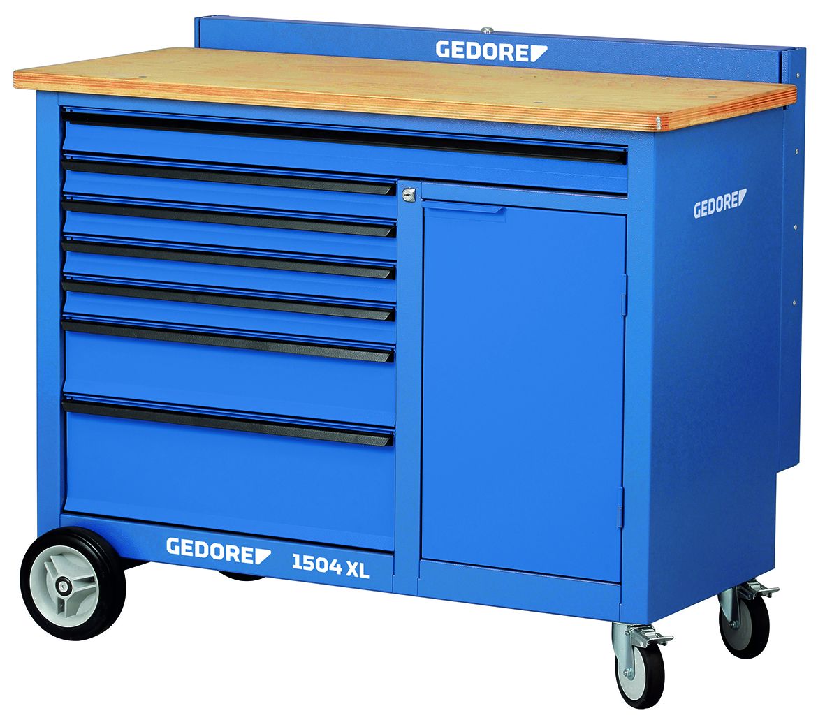 • Can be attached to workbench 1504 XL, 1506 XL • Automatically raised by two gas springs, lockable with cylinder lock • Neat arrangement of tools • Square perforation 10 x 38 mm • Dimensions: H 640 x W 1190 x D 70 mm • GEDORE blue • Execution LH with hook assortment No. 1504 HS