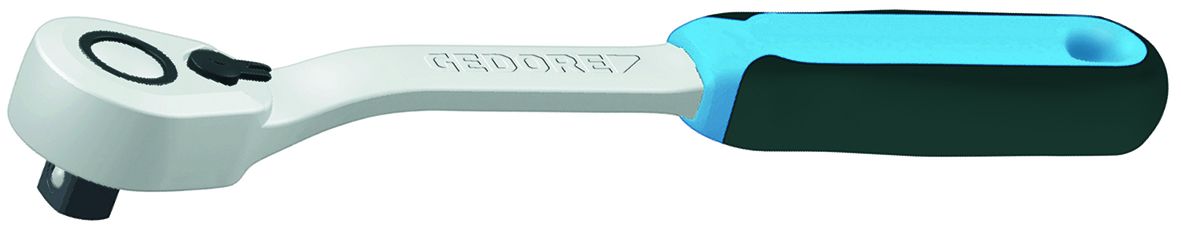 • Used throughout industry and the automotive world - and as well in confined spaces • Torque acc. to DIN 3122, ISO 3315 • Handle offset for barely accessible places • Reduces the risk of injury to the fingers when working on flat surfaces • Small, drop shaped head for confined areas • Fine-toothed (60 teeth), with lever change and push-button release • Return angle 6 degrees • Non-slip 2-component handle with hanging hole • For hand-operated sockets and accessories with square drive as per DIN 3120 - C 12.5, ISO 1174, ball locking device • GEDORE vanadium steel 31CrV3, chrome-plated