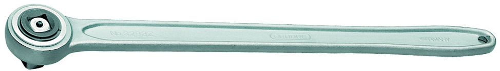 Used throughout industry and the automotive world. Acc. to DIN 3122, ISO 3315. With square coupler, medium-fine toothed, extremely rugged. Return angle 10 degrees. For hand-operated sockets and accessories with square drive as per DIN 3120 – D 20, ISO 1174 with locking pin. Gedore vanadium steel 31CrV3, chrome-plated.