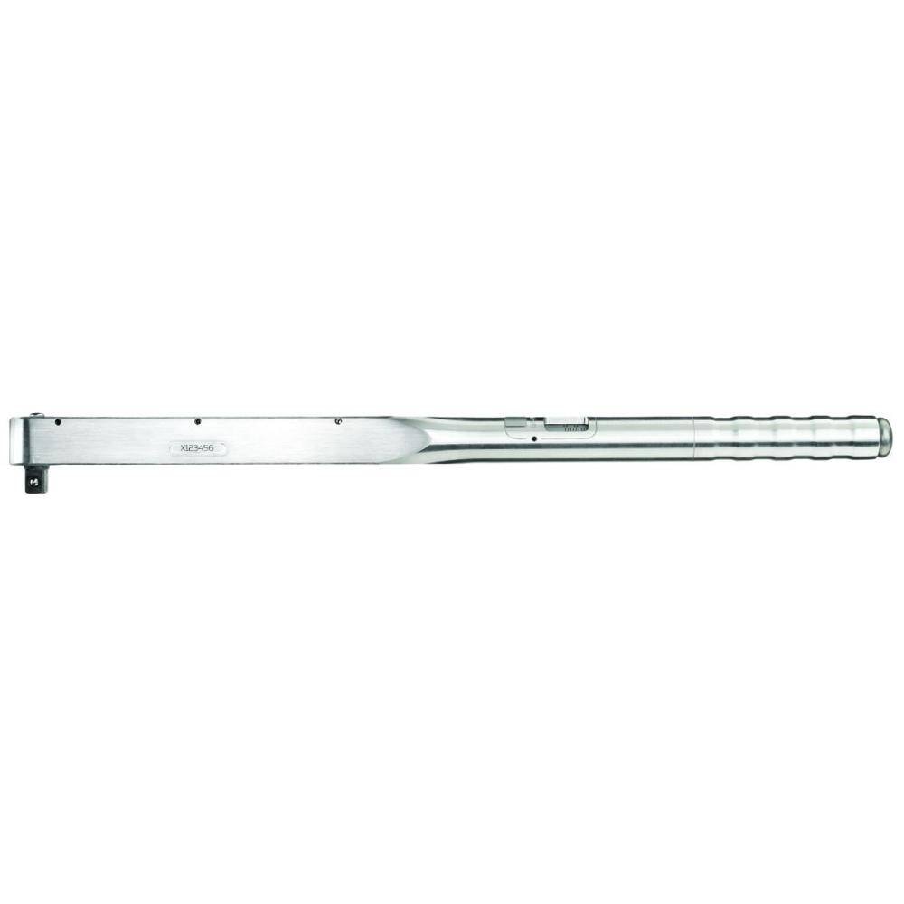 Use: • Controlled screw tightening in the range 40-200 N·m / 30-150 lbf·ft • For use in almost all industrial manufacturing areas Features: • Classified to DIN EN ISO 6789:2003 Type II Class A, with a factory certificate. Working accuracy: +/- 3 % tolerance of scale set torque. The specification of the standard (+/- 4 %) is exceeded. • 1/2" square drive with ball locking device DIN 3120 - A 12.5, ISO 1174 • Automatic short-path actuation with tactile impulse and audible signal • Dual scale with a scale graduation of 5 N·m and 5 lbf·ft • With push-button release Technical advantage/Function: • Lightweight and robust (as housing is made of an aluminium alloy), very workshop-friendly • No inaccuracies whether used with both hands or held away from the handle (as for standard torque wrenches). Both the square drive and fulcrum are on an axis which ensures a high degree of user safety; can be extended to reduce the user's working load. • Extremely low wear attributable to reduced forces in a unique lever mechanism • Forged lever chain from our own quality forge • Maximum precision even when subjected to extreme continuous use • Long life cycles and tool lives • Easy operation - fast and safe torque tightening • Easy adjustment thanks to attractive adjusting button secured against loss at the end of the handle • Single- and double-square drive for controlled bi-directional tightening
