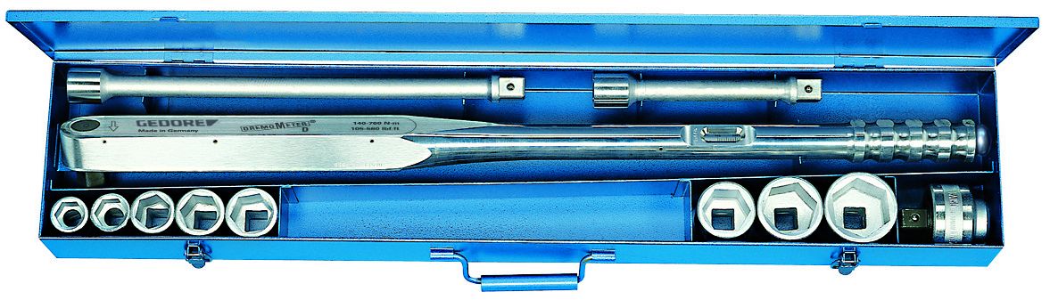 Use: • Controlled screw tightening in the range 155-760 N·m / 115-560 lbf·ft • For use in almost all industrial manufacturing areas Features: • Classified to DIN EN ISO 6789:2003 Type II Class A, with a factory certificate. Working accuracy: +/- 3 % tolerance of scale set torque. The specification of the standard (+/- 4 %) is exceeded. • 3/4" square drive with pin-locking mechanism DIN 3120 - B 20, ISO 1174 • Automatic short-path actuation with tactile impulse and audible signal • Dual scale with a scale graduation of 10 N·m and 10 lbf·ft Technical advantage/Function: • Lightweight and robust (as housing is made of an aluminium alloy), very workshop-friendly • No inaccuracies whether used with both hands or held away from the handle (as for standard torque wrenches). Both the square drive and fulcrum are on an axis which ensures a high degree of user safety; can be extended to reduce the user's working load. • Extremely low wear attributable to reduced forces in a unique lever mechanism • Forged lever chain from our own quality forge • Maximum precision even when subjected to extreme continuous use • Long life cycles and tool lives • Easy operation - fast and safe torque tightening • Easy adjustment thanks to attractive adjusting button secured against loss at the end of the handle • Single- and double-square drive for controlled bi-directional tightening