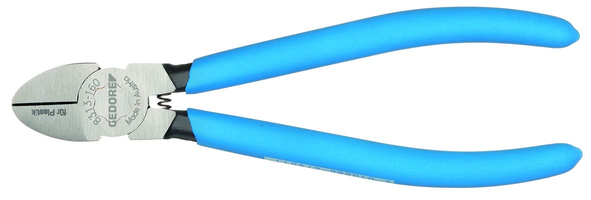 • Without cutting edge bevel, for flush cutting of plastic parts or similar soft materials • Black, cutting faces flat-ground, with compression spring for automatic opening • With blue dipped non-slip handles (TL)
