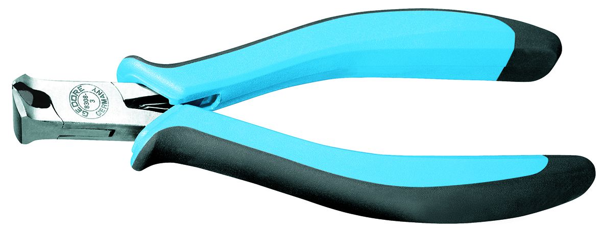 • Wide head and long cutting faces, with fine bevel • Cutting edges angled 55 ° • Head ground to a point on one side • For working in confined spaces • Induction-hardened precision cutting edges, hardness 61 - 63 HRC • Cutting values: Hard steel: 0.4 mm/AWG 26 Soft steel: 1.0 mm/AWG 18 Copper wire: 1.5 mm/AWG 15 • With opening spring • ESD = electrostatic discharge protection
