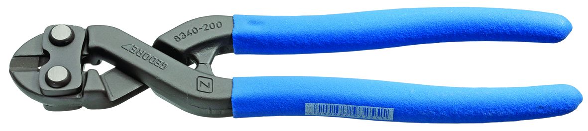 Compact power bolt cutter with a particularly effective cutting performance • Optimum lever action requires less effort • Wear-free rotating/thrust block bolt to reduce sliding friction when cutting • Cutting edges additionally inductively hardened (63 - 65 HRC) • Double-sided recess cutting with extra cutting edge, near the joint, ensures optimum lever conditions for large wire diameters • The extra cutting edge serves as first cut for thick bolts and engraves them deeply • In the second step, the main cutting edge cuts through the bolt completely • Precision cutting edges for soft wire up to Ø 6.0 mm, hard wire up to Ø 5.5 mm and piano wire up to Ø 3.8 mm • Model JL = steel-grey, with blue dipped handle protectors • Model TL = steel-grey, with blue dipped handle protectors