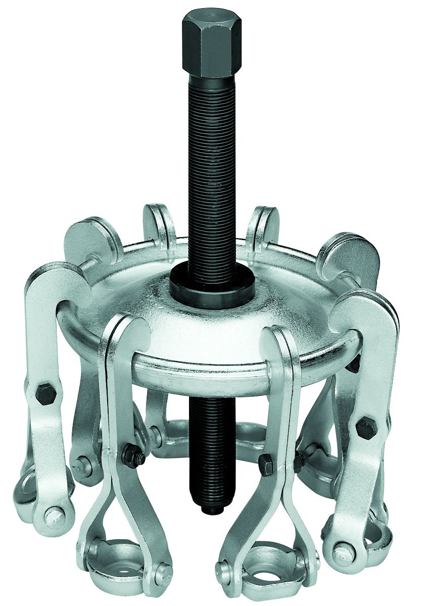 • For wheel stud circles from 150 up to 350 mm • With wheel stud protection using rotating nut apertures that always lie flat to the hub for Ø 22 mm and suitable reduction bushing Ø 14 and 18 mm • This tool may also be used with the hydraulic aid without requiring a reduction bushing • Upgradeable with hydraulic spindle no. 1.06/HSP3 • No. 1.61/H = Spare leg