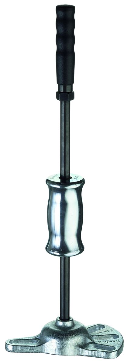 • Suitable for drive shafts with 4 or 5 apertures • For wheel stud circles 100-155 mm with 6 mm screws • For tapped holes up to max. M14 • Operation: The puller is attached to the drive shaft flange using the nuts of the wheel bolts. By striking the spindle head with the sliding hammer, the shaft may be removed easily and without damage.