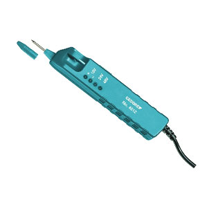 • For 3-48 V • Use: automobile, utility vehicles • LED displays the voltage in the area of 12, 24, 48 V as well as the polarity • For work in confined areas • TÜV and GS tested, IEC / EN 61010-1 (DIN VDE 0411) • Measurements: 145 x 25 x 16mm • Protection classification IP40, protection class III