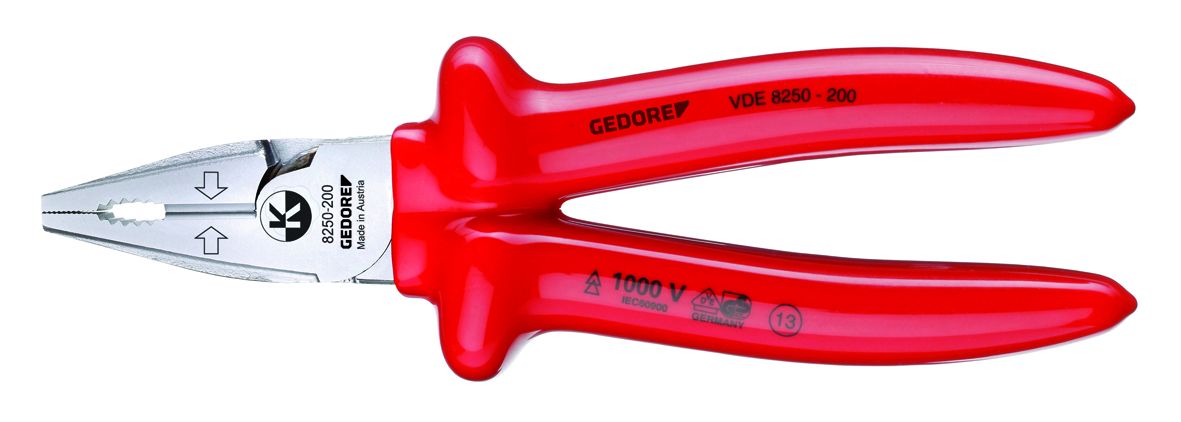 Gedore VDE Heavy duty combination pliers with VDE dipped insulation 225 mm