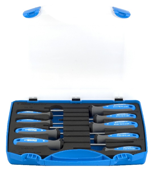 - 4x TBI flat screwdriver (article 605TBI) dim. 0.5x3.0x80, 0.8x4.0x100, 1.0x5.5x125, 1.2x6.5x150