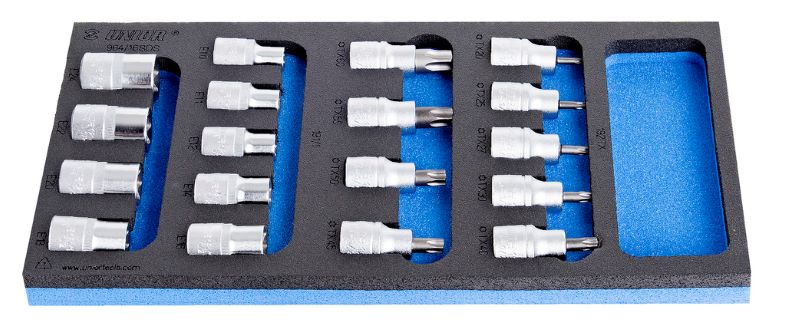 Unior Set of screwdriver sockets wrenches TX profile in SOS tool tray /18 621071