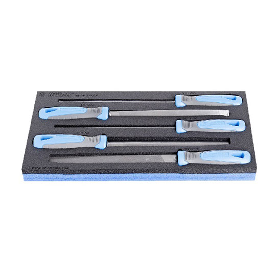 - file with handle, smooth, dim. 200 mm; 1x flat , 1x half-round, 1x three-square, 1x square, 1x round
