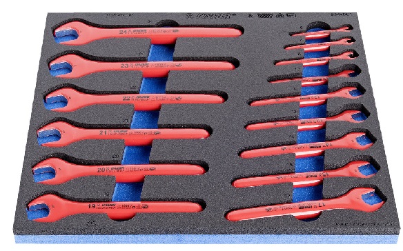 • 15x insulated single open end wrench (article 110/2VDEDP) dim. 6, 7, 8, 10, 12, 13, 14, 15, 17, 19, 20, 21, 22, 23, 24