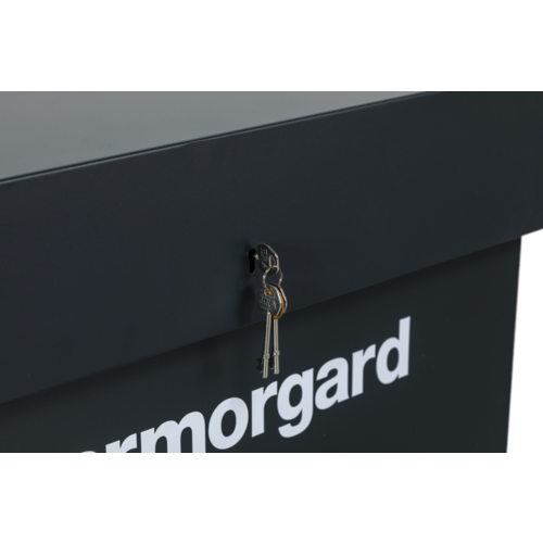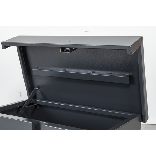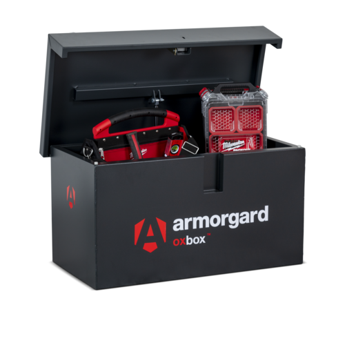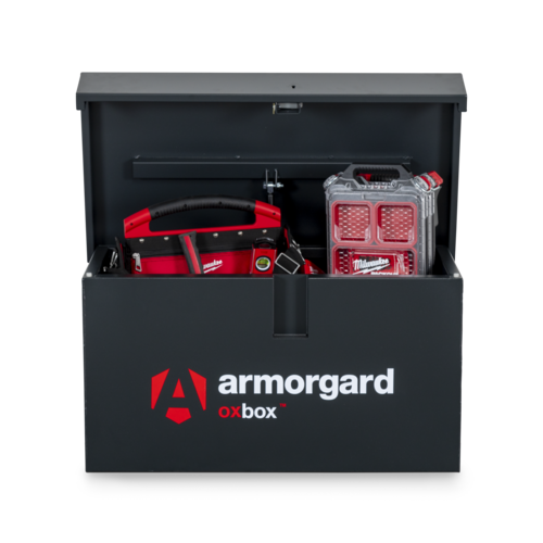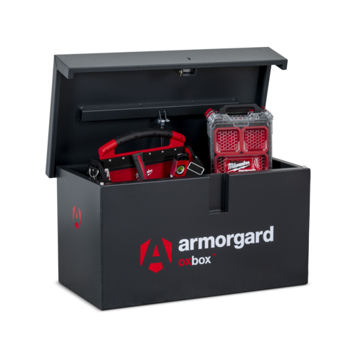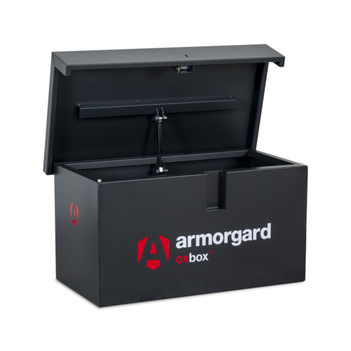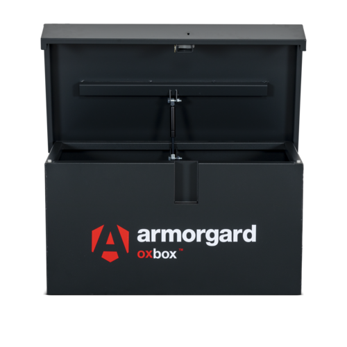 Oxbox van box. As strong as an Ox! Heavy duty steel van storage vault - ideal for securing tools in your van. Powerful gas strut to ensure the ease of opening and closing the lid, Fitted with ultra robust 5 Lever deadlocks, Supplied with heavy duty keys, that won't snap easily and can be removed from the lock when it is in the unlocked position, Serial numbered for extra security and for guaranteed key replacement service.