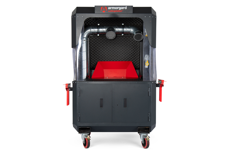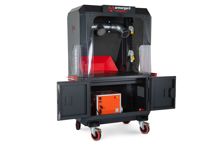 A go-anywhere, multi-purpose cutting station with unrivalled safety features to minimise vibration, sparks, noise and dust. The Armorgard CuttingStation™ is a unique purpose-built work station for cutting lengths, such as conduit, timber, cable tray and pipe. Integral health and safety features include rubber matting, fire-rated, noise-cancelling foam and PVC screens to contain sparks. Extraction and air filtration units can easily be fitted and a roomy, lockable cupboard provides secure storage. A new expandable working area to accomodate mitre saws and cutaway sides for easier handling of longer lenghts. Improved support arms are now quicker and easier to change between four different configurations, ad rubberised wheels to further reduce vibration.