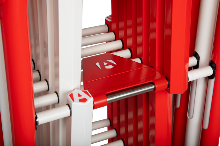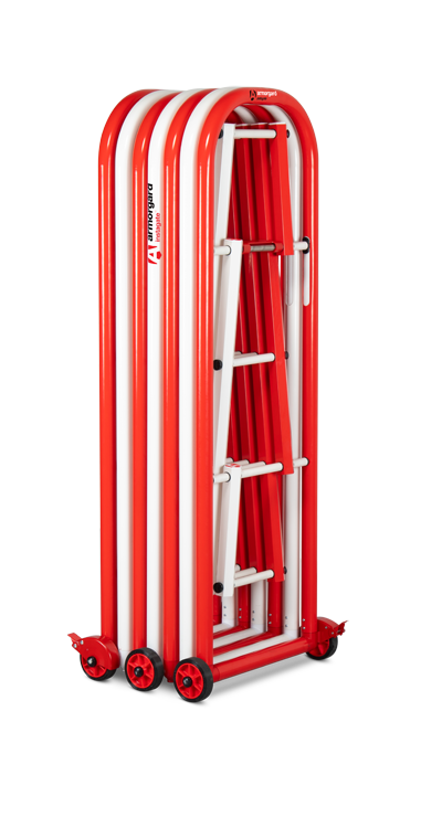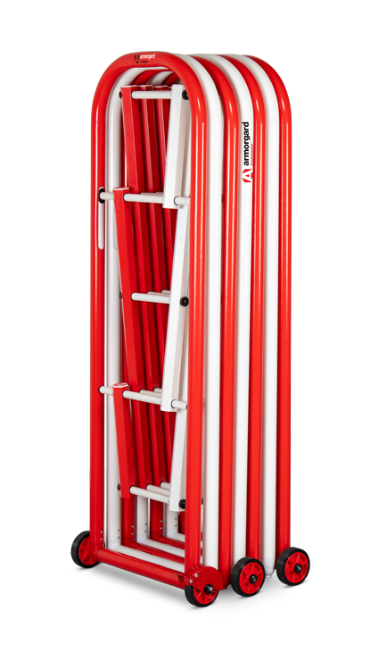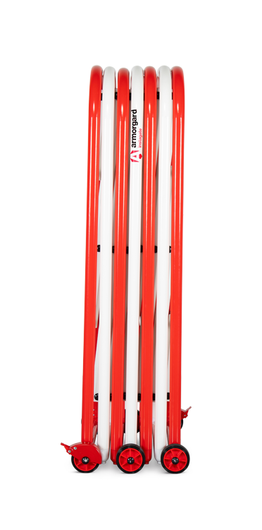 InstaGate, a new quick-to-deploy crowd barrier that's robust and easy to extend to any length. Ideal for crowd control or pedestrian/logistics management in a wide range of situations. Use indoors or outside and extend to any length by adding additional units. The 4ft high InstaGate deploys in seconds to cordon off restricted areas. Easy to move and expand singlehandedly. Robust braked wheels allow for easy movement and placement. Unique latching system secures the barrier in a closed position when not in use, and can be used to extend to any length using additional modules. Highly visible red and white markings are powder-coated and weatherproof.Made from lightweight, ultra-strong aluminium. Can be fitted with standard scaffold clamps to fix to scaffolding or turn corners.