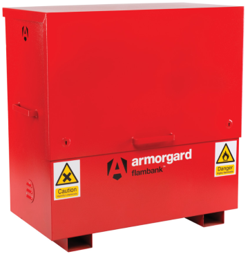 Flambank Hazardous Storage Chest. Fully complies with all regulations for the safe storage of chemicals and flammables, Popular for external fixed applications where security is also an issue, Fully welded and tested sump base to prevent leakage, Ultra-robust 5-lever deadlocks on both sides and anti-cut rollers in deadbolt, Robust chubb style keys supplied, High and low level ventilation to prevent build-up of fumes, Flame arrester gauze fitted on all boxes, Finished in bright red with relevant hazard warning signs fitted as standard, Built to specification for ½ hour fire resistant, Supplied with 1 x removable shelf, Castors available to suit