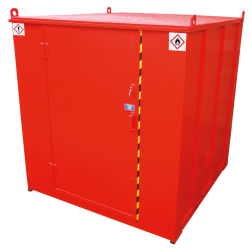 Flamstor 2000x2060x2175, Walk-in hazardous stores designed for fixed installation, Manufactured to the highest specification for the safety and security of larger quantities of chemicals and flammables. Fully complies with all relevant regulations for storing Flammables or Chemicals, Welded and tested sump to prevent leakage, Raised and removable open-steel floor, Heavy duty door with two 5 lever deadlocks, High and low level ventilation, Internal shelves fitted, Finished in bright red with relevant hazard warning signs, 30 minute fire resistant Fork lift pockets and crane lifting eyes, Can be custom built to suit specific requirements
