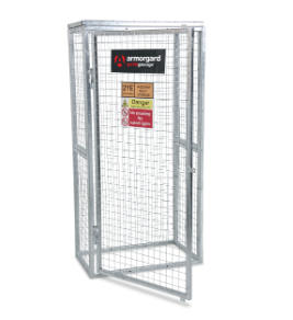 Gorilla gas cage 1012x563×931, Unique, modular, bolt-together gas cage, designed for the safe storage of gas cylinders. Heavy-duty construction using 25mm box section and 3mm wire mesh maximising the strength and durability of the product. Comes with a hinged door and padlock facility for security. Has the facility for bolting the cages down to the ground, which is brilliant for a fixed installation requirement, providing extra security and stability. Comes complete with all fixings and relevant signage to comply with regulations on storing gas cylinders. Galvanised finish to sustain all weather conditions and provide maximum usability and durability. Modular design allows the cage to be erected quickly and it can be made to any required size. Can be easily dismantled when not in use and stored away tidily as individual panels.