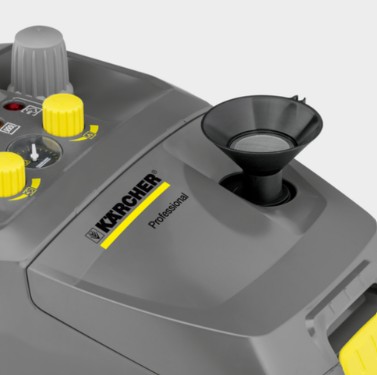 Continuously variable steam volume control and the VapoHydro function (continuous regulation of steam saturation) mean that the machine can be adapted perfectly to any cleaning task. The 2-tank system can be refilled at any time, and ensures a rapid heat-up time as well as uninterrupted operation.