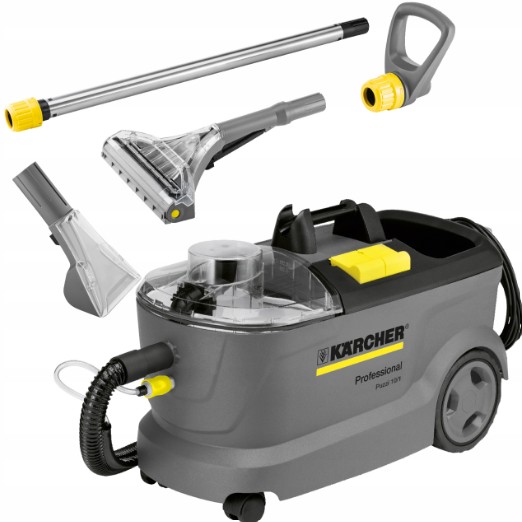 The Puzzi 10/1 spray-extraction cleaner provides new levels of convenience and ease of use, thanks to a host of design features all intended to make carpet and upholstery cleaning more productive and therefore quicker and at lower cost. Using the proven spray-extraction method, the Puzzi 10/1 deep cleans carpets and leaves only minimal residual moisture.