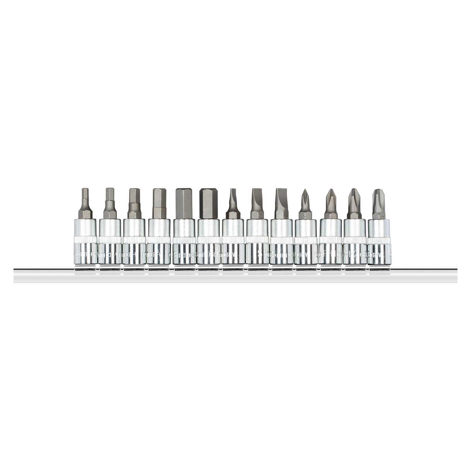 Screwdr.bit sockets 1/4 +rail 13pcs