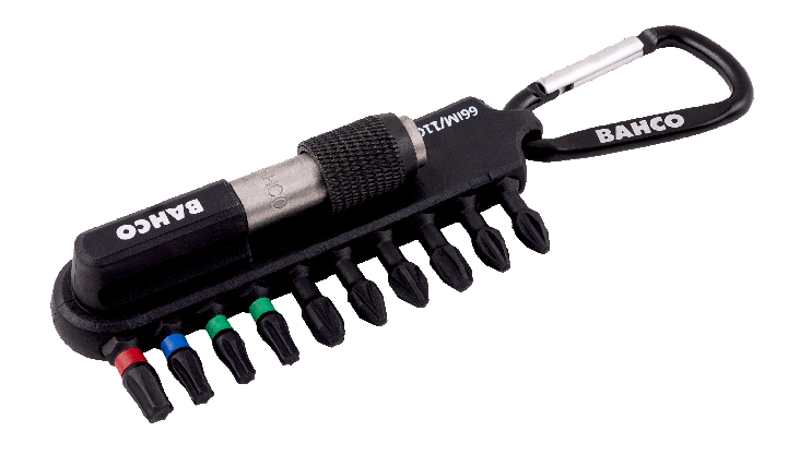 • Bit set of 11 pieces: 10 bits for Phillips, Pozidriv and TORX® head screws and 1 magnetic quick release bit holder