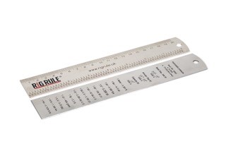 This is where Rigrule® can help. The specially designed ruler clearly shows inch fractions for use with O.D and I.D calipers. Industry standard formulas and conversions are etched onto the back for an instant reference guide.