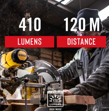 High: 410 lumens; 1 hour, 45 minutes run-time; 120 m beam range