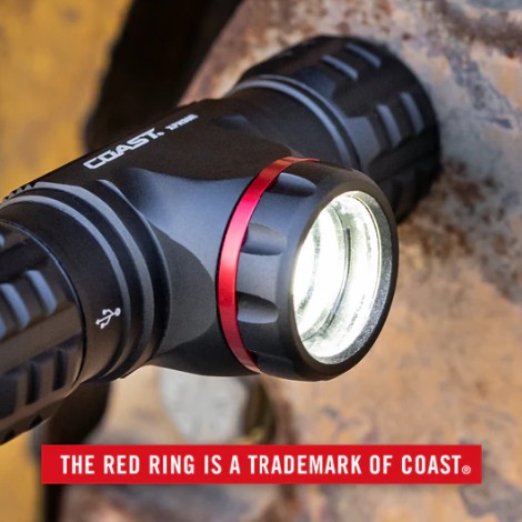 Using Coast's Pure Beam Focusing Optic System the beam can be focused between the bulls-eye spot beam with a range of up to 120 metres, and the ultra view flood beam that gives a consistent circle of light with no dark circles in the middle. Changing between spot to flood is achieved by twisting the bezel of the head torch.