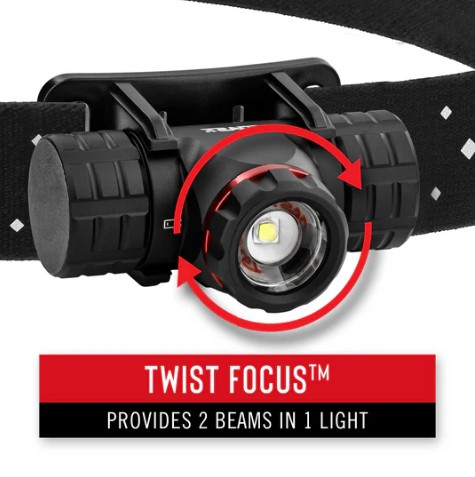 Using Coast's Pure Beam Focusing Optic System the beam can be focused between the bulls-eye spot beam with a range of up to 165 metres, and the ultra view flood beam that gives a consistent circle of light with no dark circles in the middle. Changing between spot to flood is achieved by twisting the bezel of the head torch.