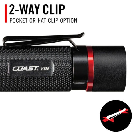 The Coast HX5R Rechargeable LED torch has a maximum output of 340 lumens and is compact for everyday carry.