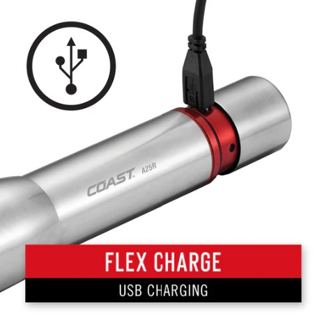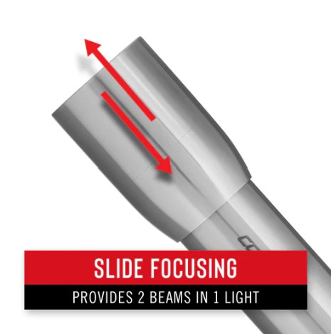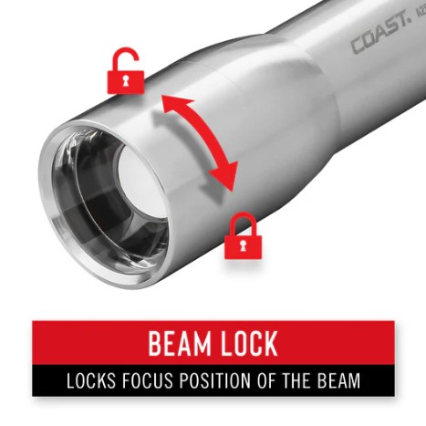 Using Coast's Pure Beam Focusing Optic System with Fingertip Speed Focus Control the A25R provides superior beam consistency from spot to flood and the Beam Lock System easily locks in your desired beam with a slight twist of the focusing bezel.