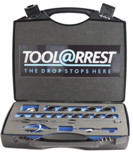 Traditional ‘ball release’ sockets present a serious risk when working at height. Sockets can be accidentally disengaged during every day working conditions, even if the ratchet is tethered securely. The Tool@rrest pinned socket sets replace the exposed handle release with a recessed side release pin on the socket itself. This works to eliminate accidental release during ratchet operation. The pinned release mechanism means the socket will not disengage on impact.