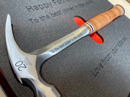 Genuine Estwing hammer, engraved on the hammer shaft and in the gift box foam with your personalised message *Upto 18 Characters on the hammer, more on the foam insert