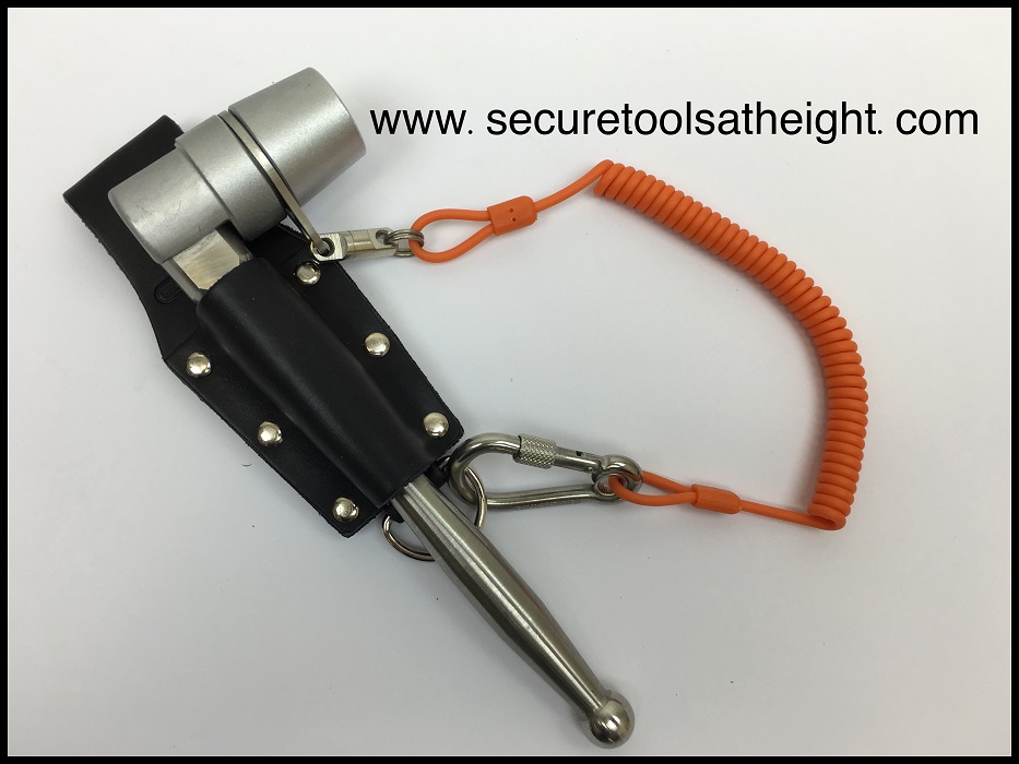 Leather Scaffold Holster for, Scaffold Spanner, Ratchet Podger, Hammer Podger with stainless steel attachment point for working at height