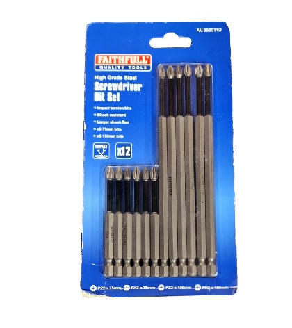 - The Faithfull Impact Long Bit Set features bits with increased torsion zones and shock flex due to their longer length.