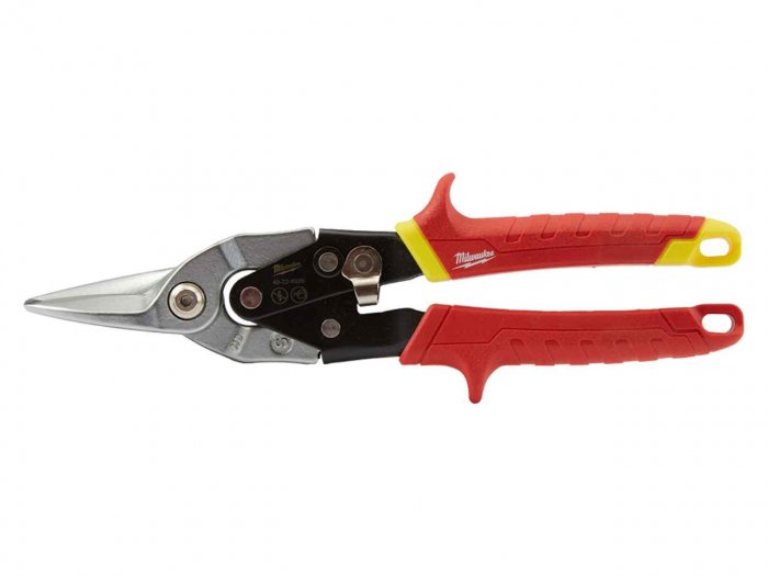 The Milwaukee Metal Aviation Snips are ideal for short straight cuts, narrow radius cuts and notch cuts. They are made from forged alloy steel (Cr steel) that is chrome plated for increased lifetime, and hardened to 65 HRC. Their serrated cutting edges prevent slippage when cutting.